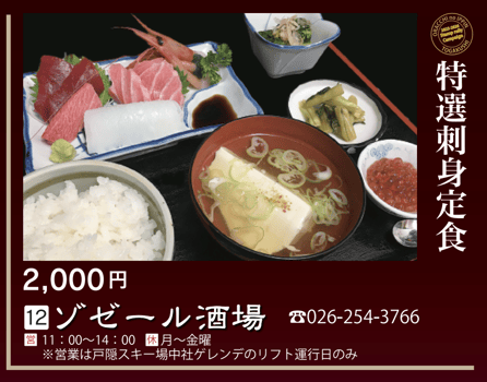 《Closed》Mondays to Fridays (Open only on lift operation days at Togakushi Ski Resort Chusha slope)