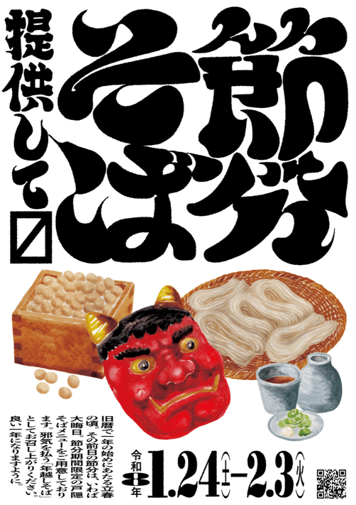 戸隠観光協会加盟そば店のうち参加店(全8店)では、1月24日から節分の2月3日まで、期間限定の「戸隠 節分そば」を提供いたします。